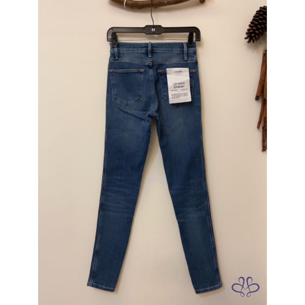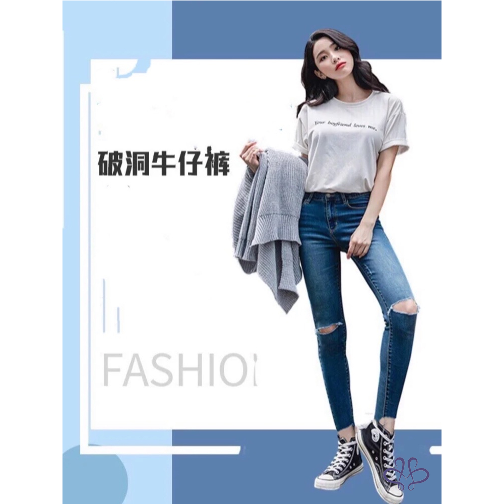 全新牛仔王牌FRAME藍色丹寧刷色破洞牛仔褲