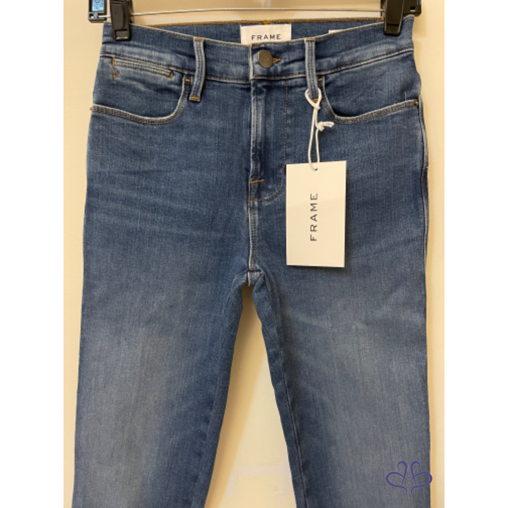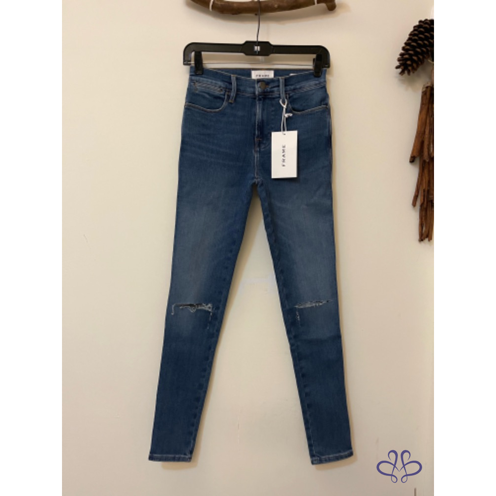 首頁 精品服飾 全新牛仔王牌FRAME藍色丹寧刷色破洞牛仔褲
