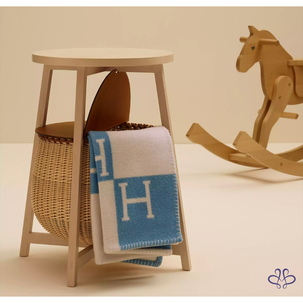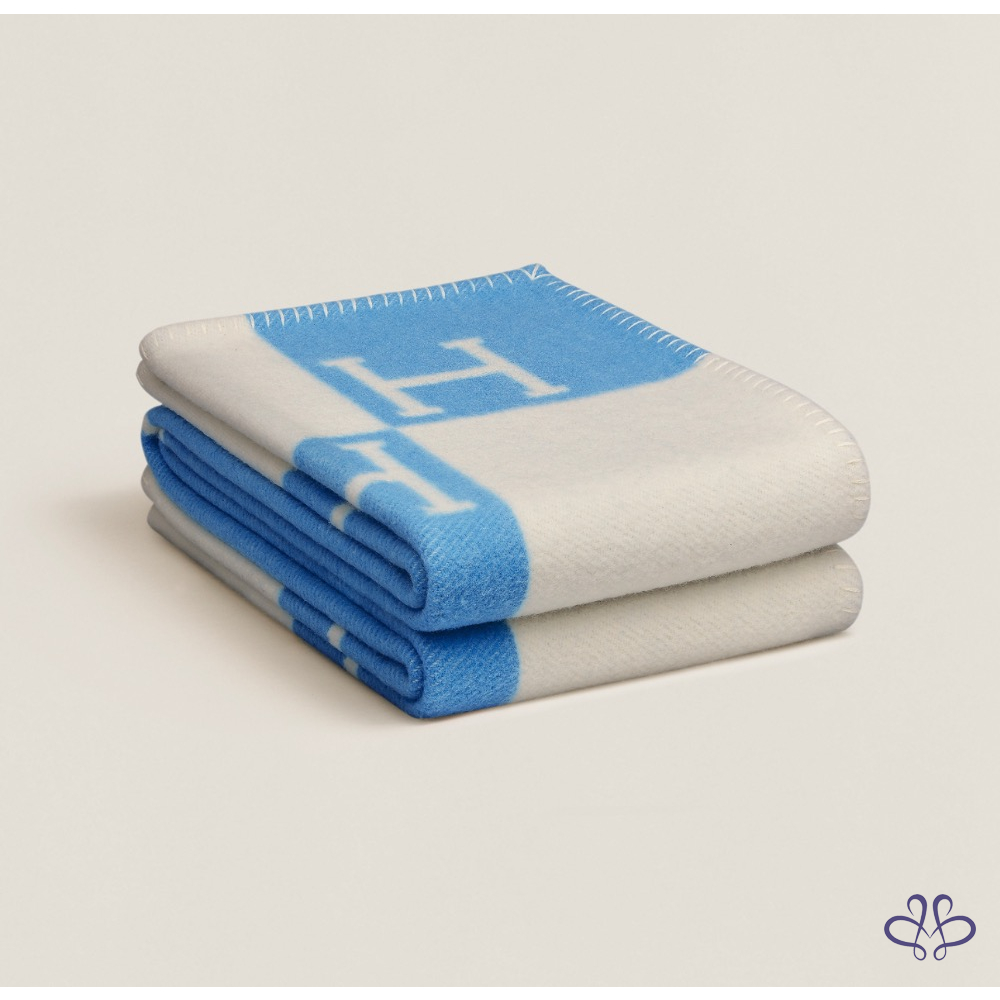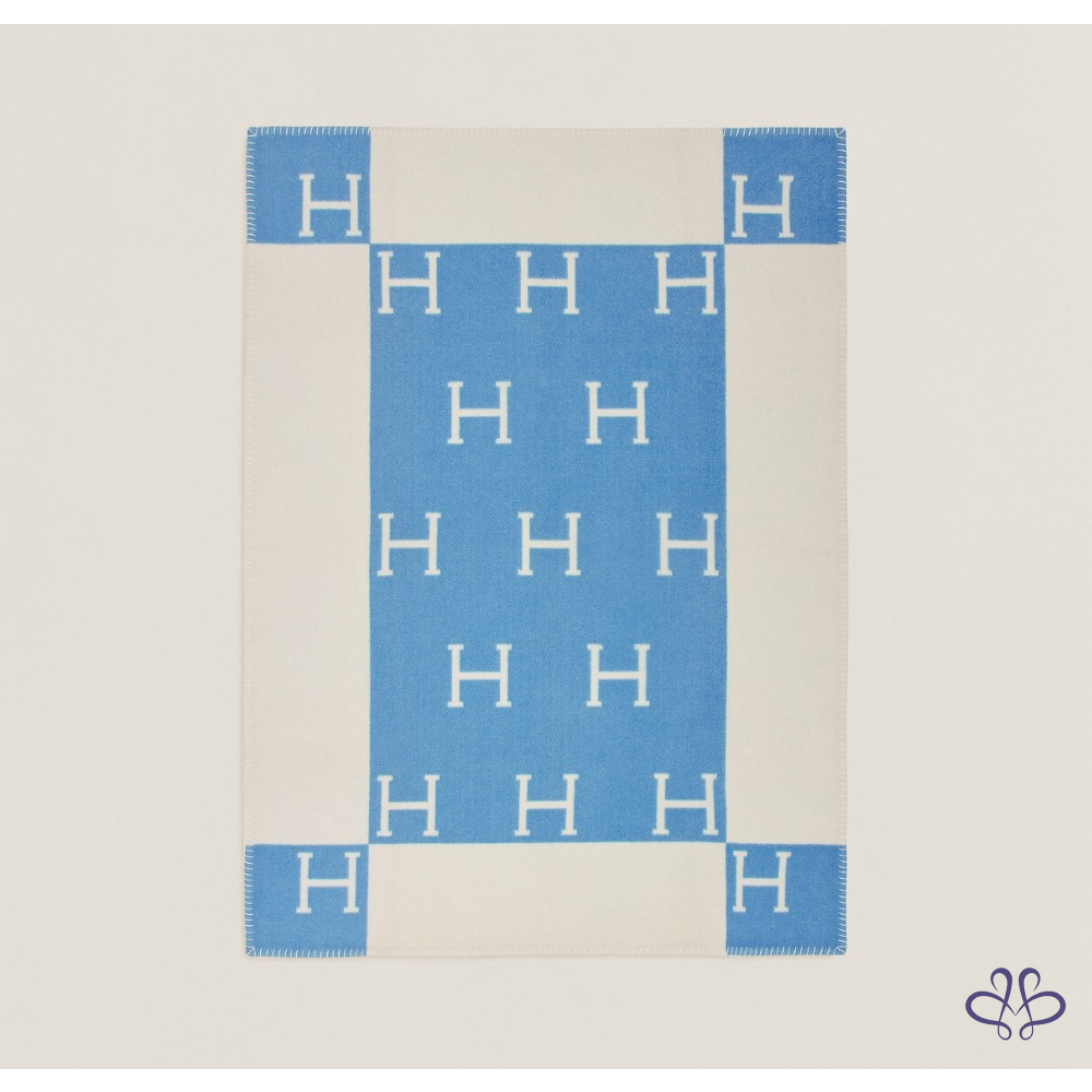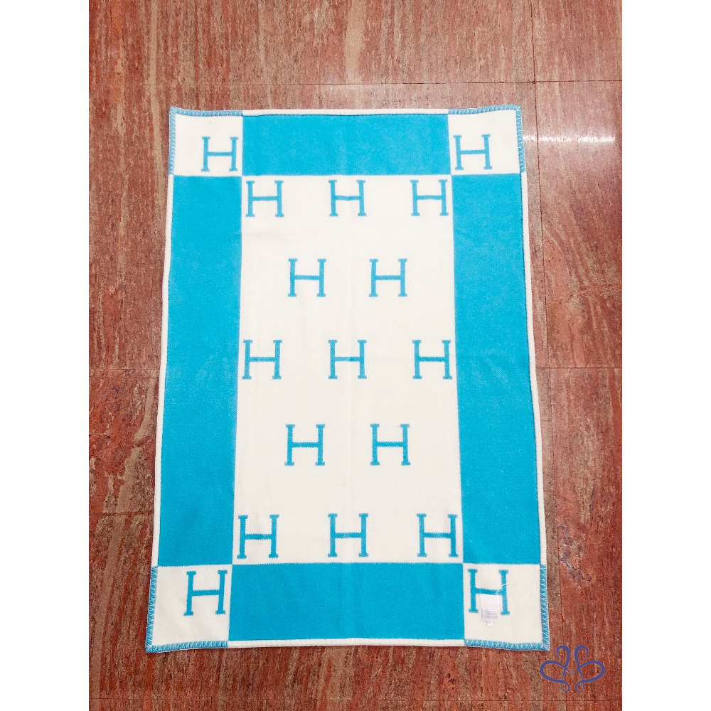 Hermès 愛馬仕 經典 Avalon 刺柏藍 / 白色 H 寶寶 毛毯 毯子 全新✨