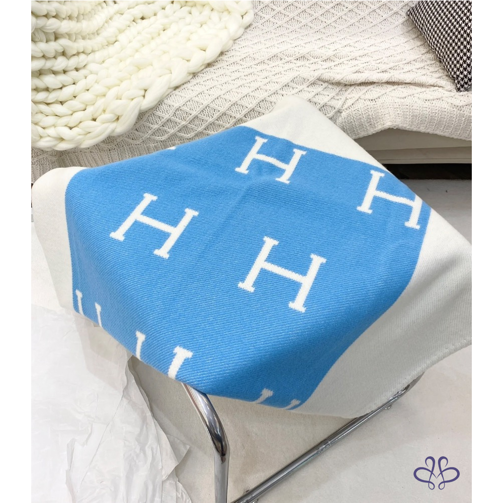 首頁 精品家居 Hermès 愛馬仕 經典 Avalon 刺柏藍 / 白色 H 寶寶 毛毯 毯子 全新✨