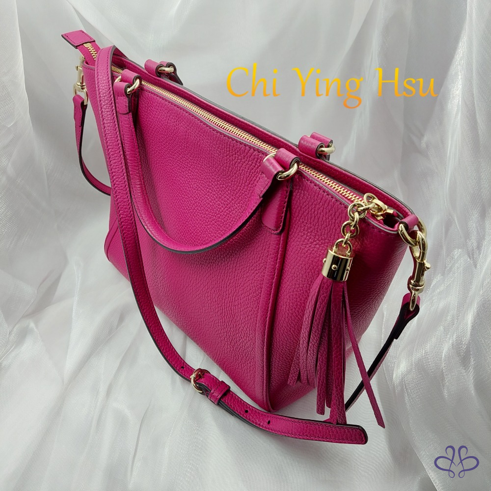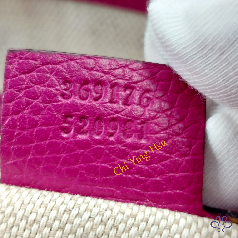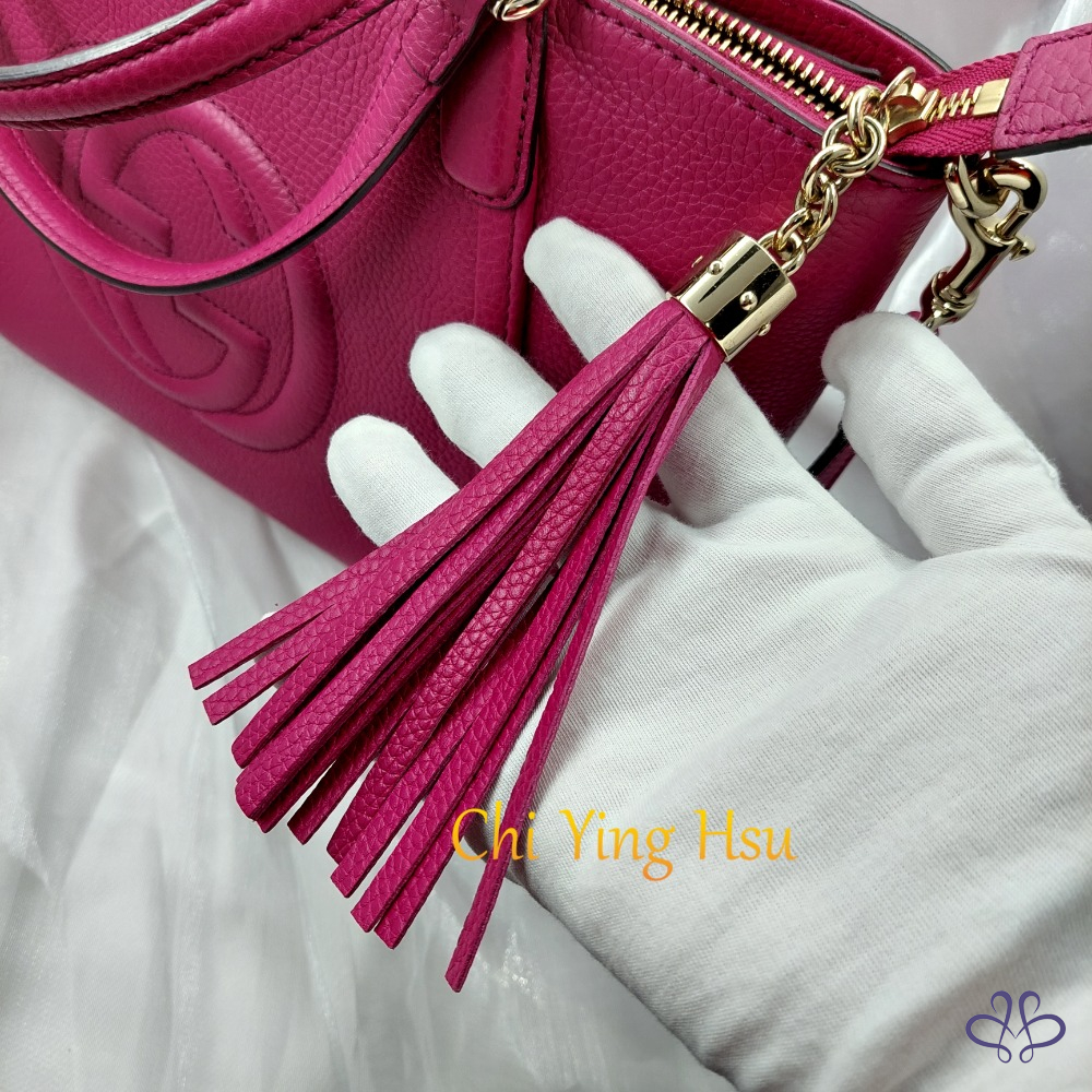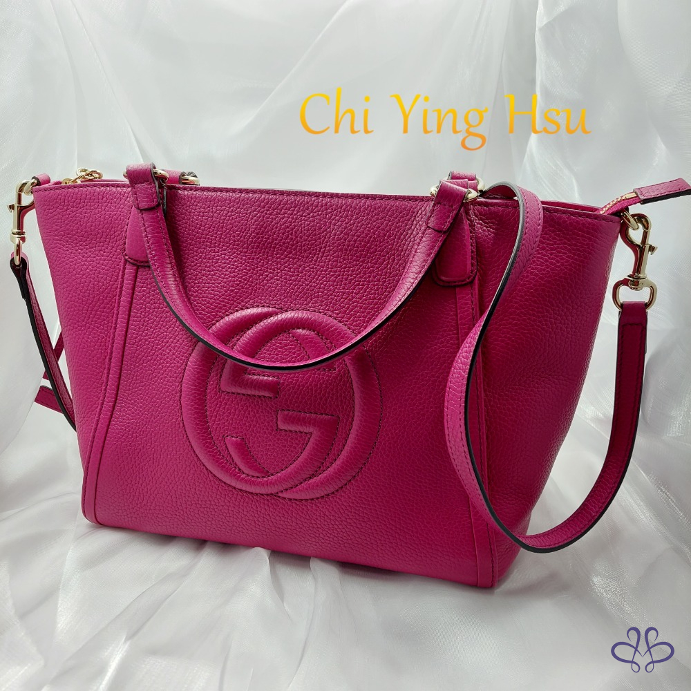 GUCCI 古馳Soho牛皮大logo壓紋手提斜背二用包(369176-桃色)-二手9.2成新