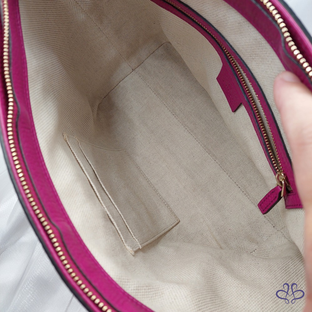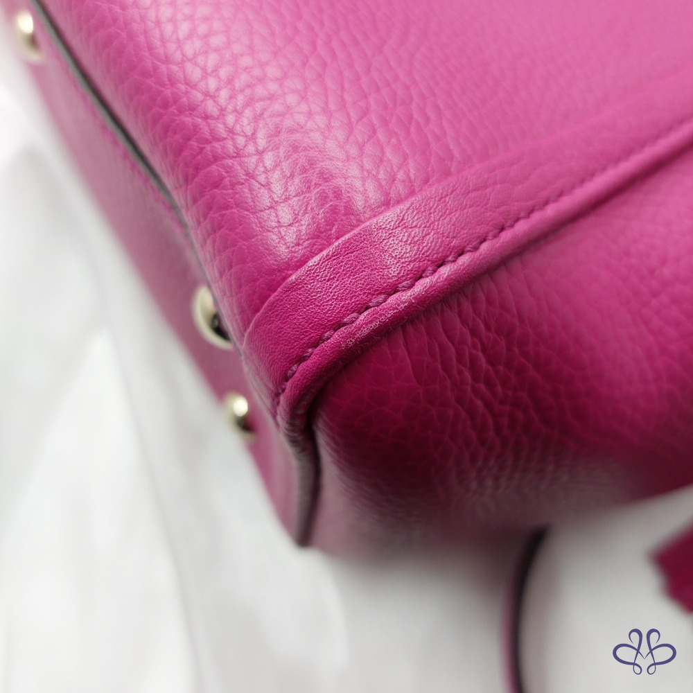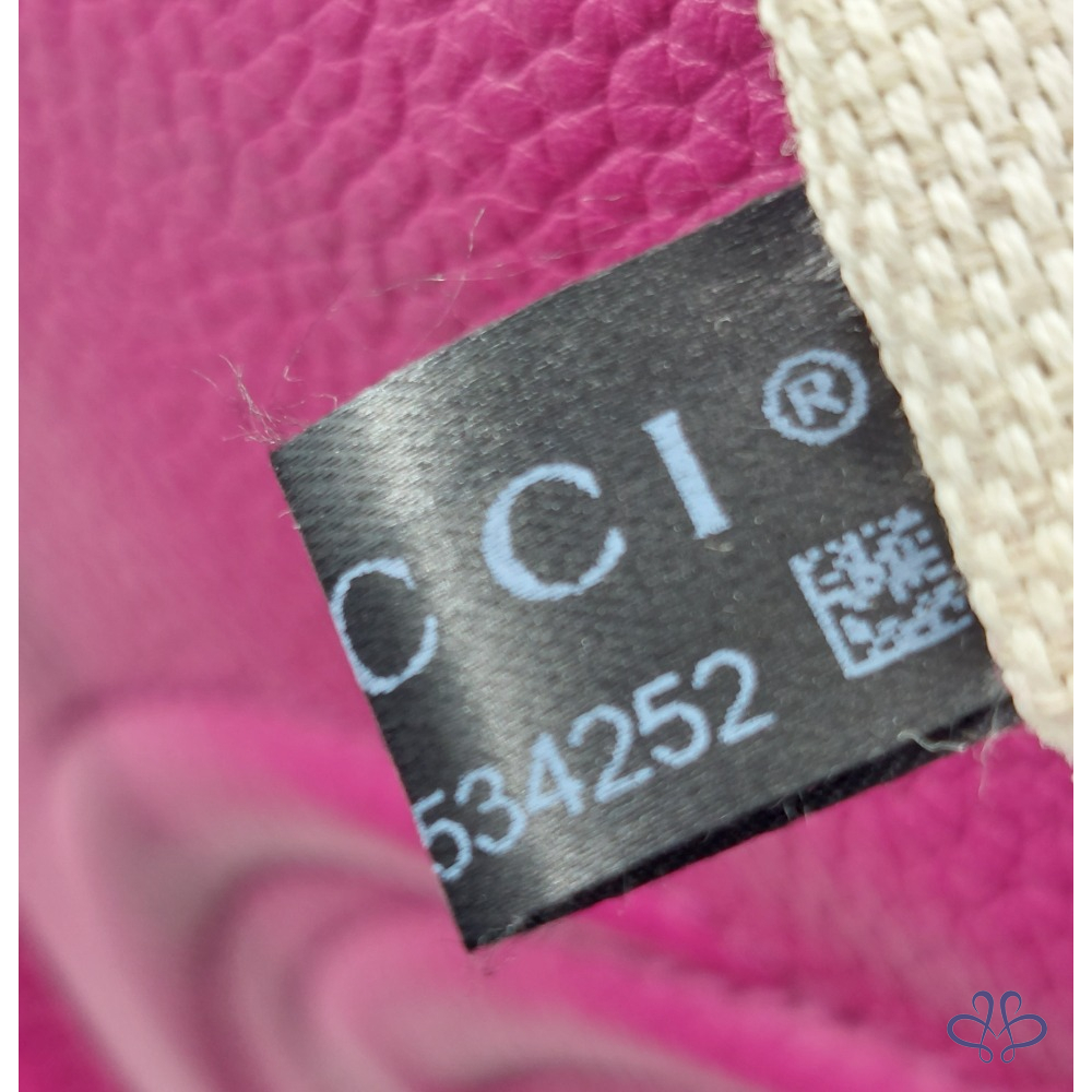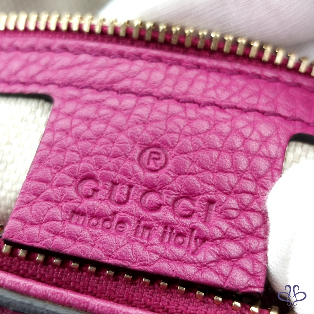 GUCCI 古馳Soho牛皮大logo壓紋手提斜背二用包(369176-桃色)-二手9.2成新