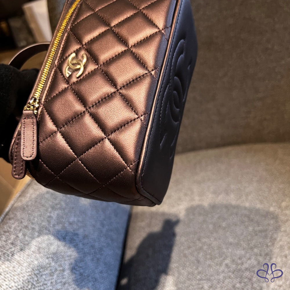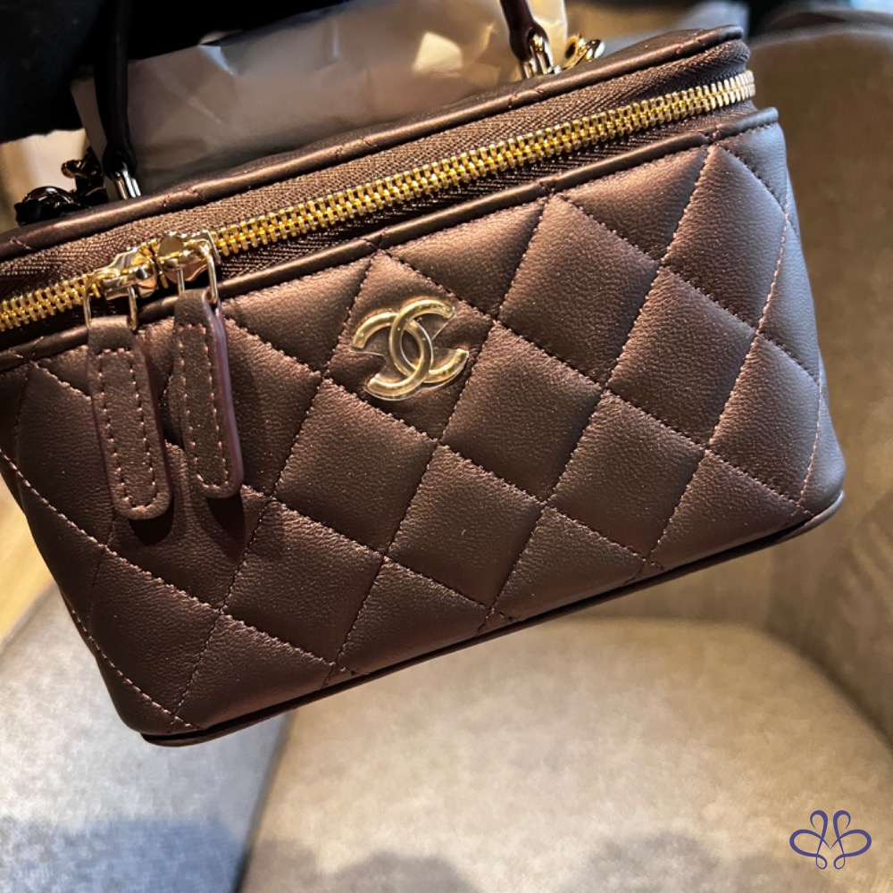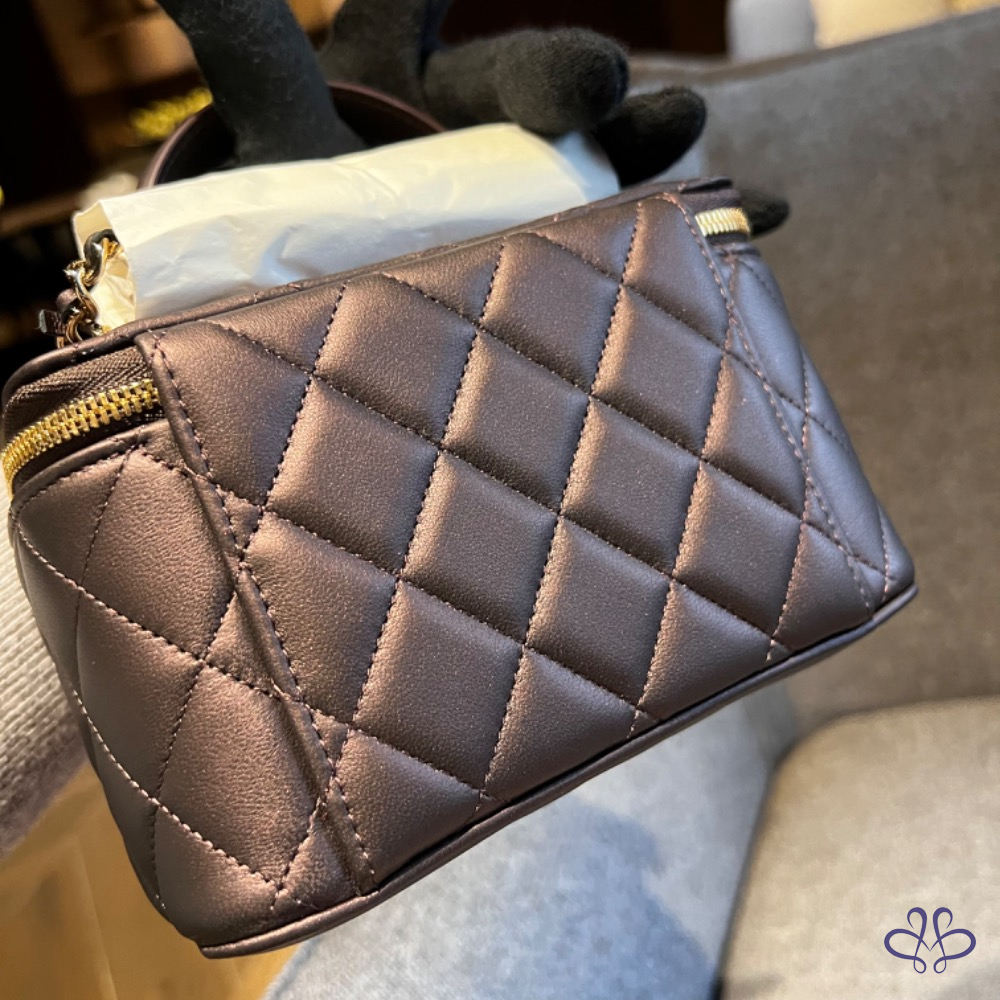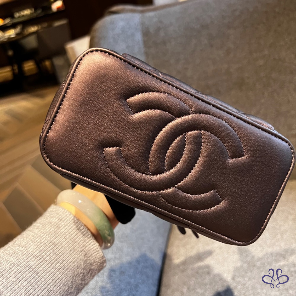 CHANEL 提把長盒子 珠光黑紫色