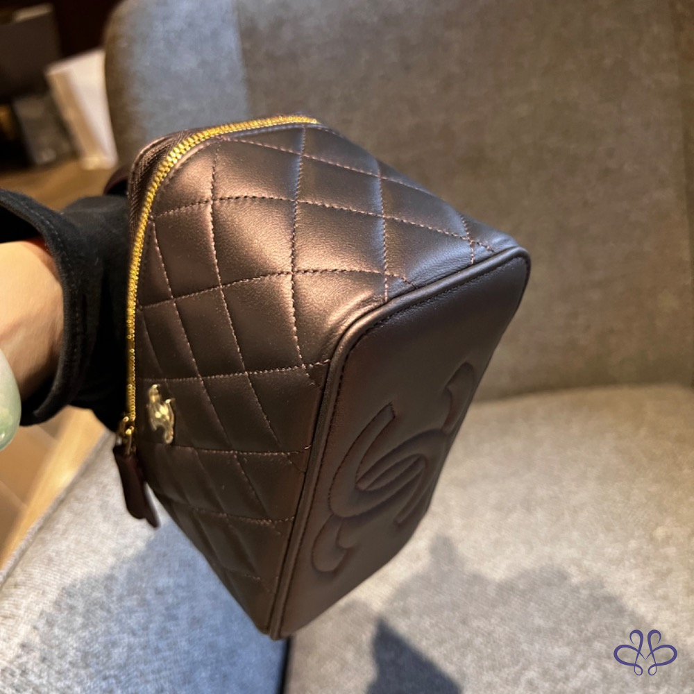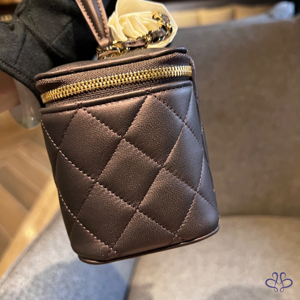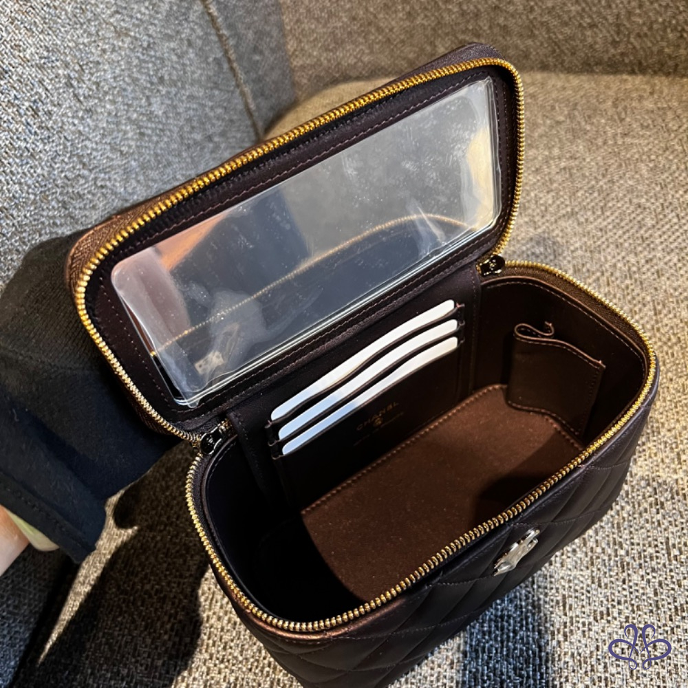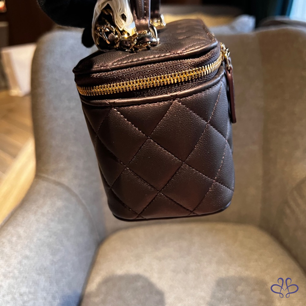 CHANEL 提把長盒子 珠光黑紫色