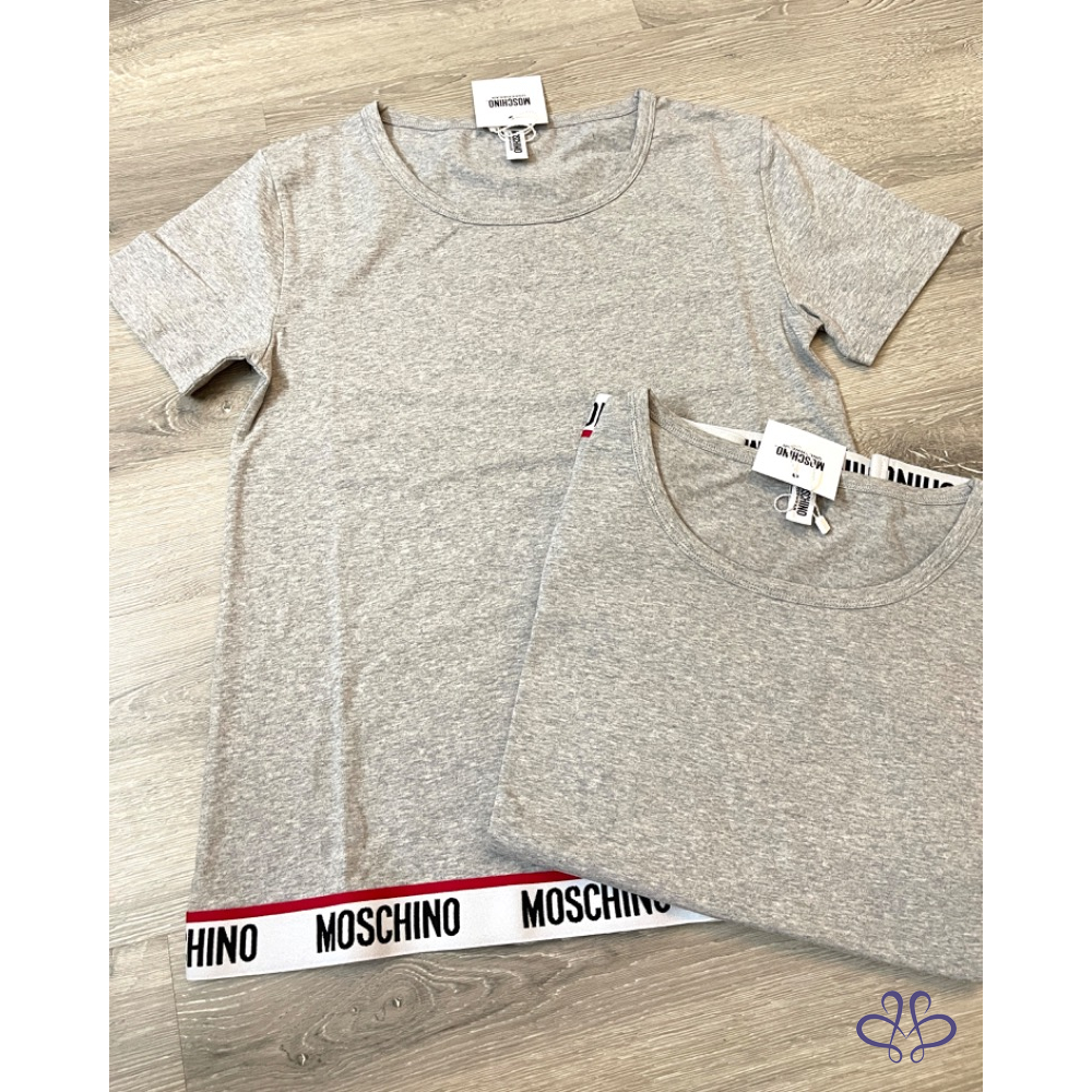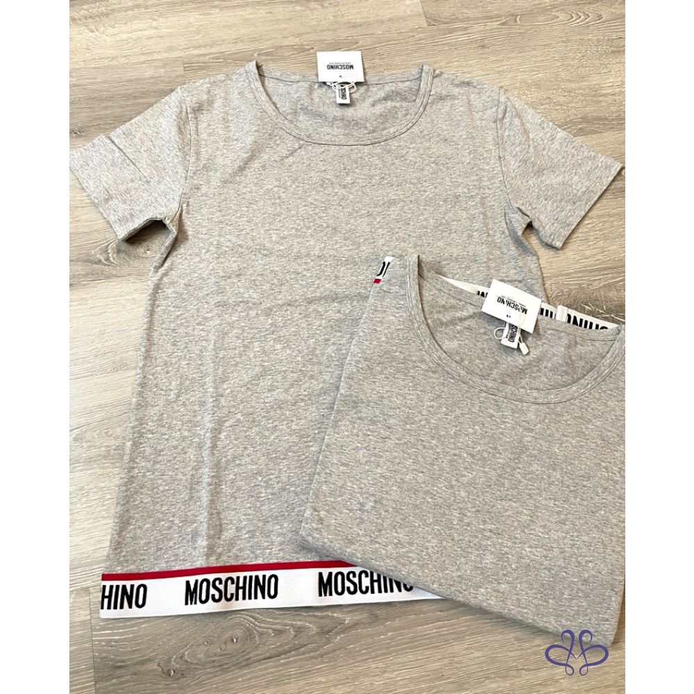 首頁 精品服飾 全新 Moschino 大人女版品牌字母灰色短T 恤。S碼。 灰色不會透,品牌辨識度高