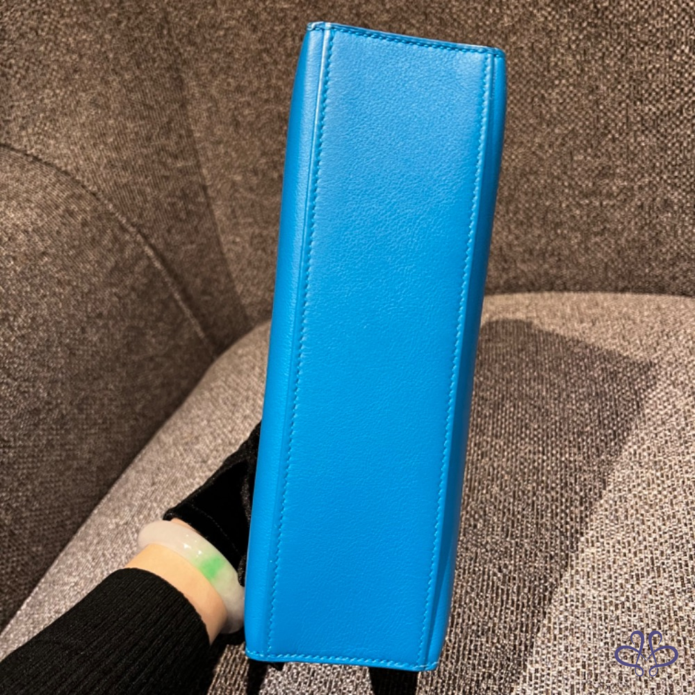 產品信息 寵編A000243 HERMÈS mini Kelly 一代 金釦 A #超甜直購42w含運 B3坦桑尼亞藍 我看了小紅書大約100顆的B3色號 沒有人把實品的色拍出來 實品的顏色非常漂亮 B3不管用任何鏡頭 絕對都跑色 ???? 實色的藍是有點帶綠 就不會顯的那麼藍 跟照片真的差蠻多 不會讓人失望的顏色 整體包況98新四角無磨 內裡乾淨 膠膜都還在
