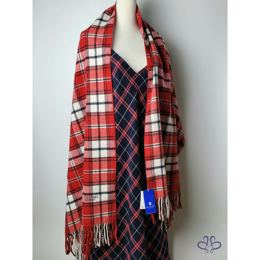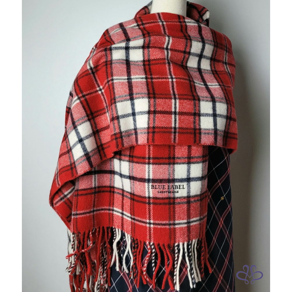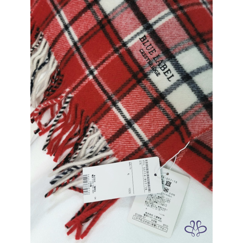 ~BURBERRY Blue Label 全新 紅色底白黑色條格紋長圍巾