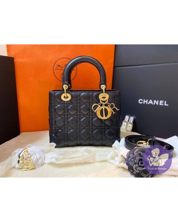 LADY DIOR 五格 黑金 经典羊皮 黛妃包