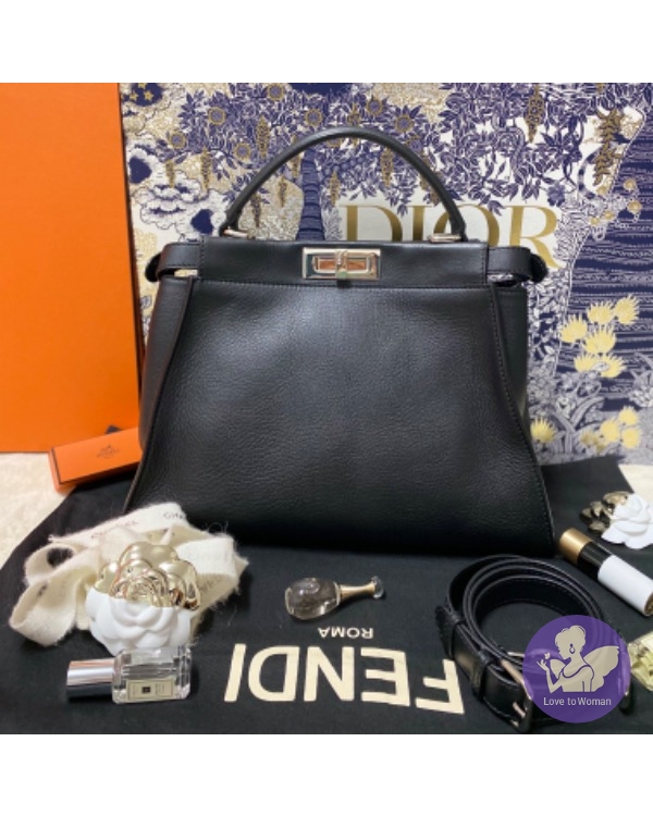 Fendi peekaboo 中款 黑色 銀釦 牛皮 限量怪獸款
