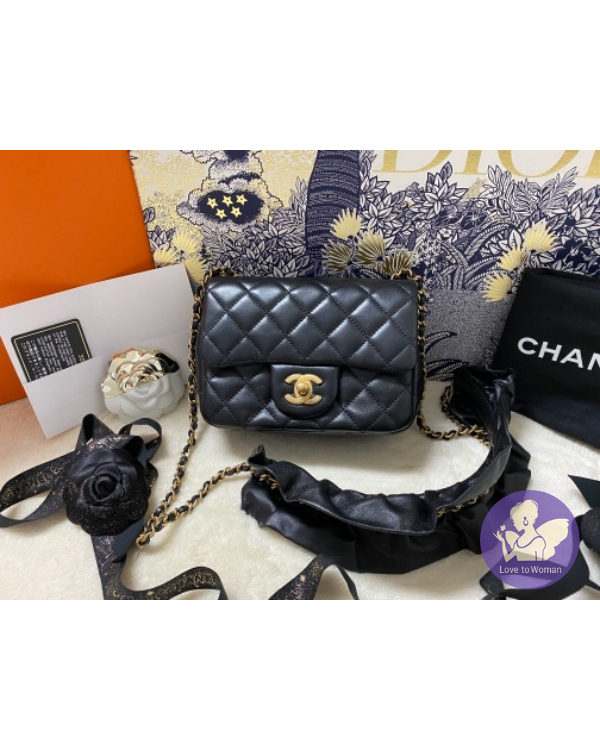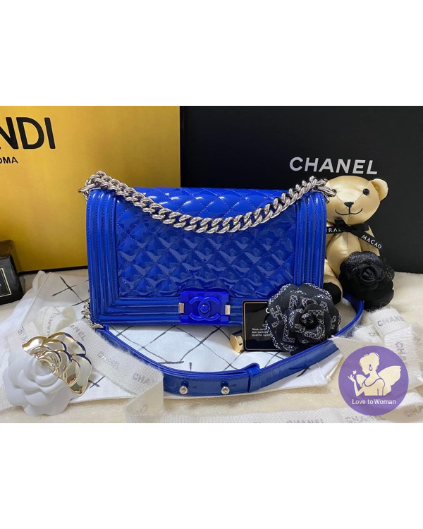 香奈兒經典菱格紋藍色小牛漆皮琺瑯釦銀鍊BOY25
