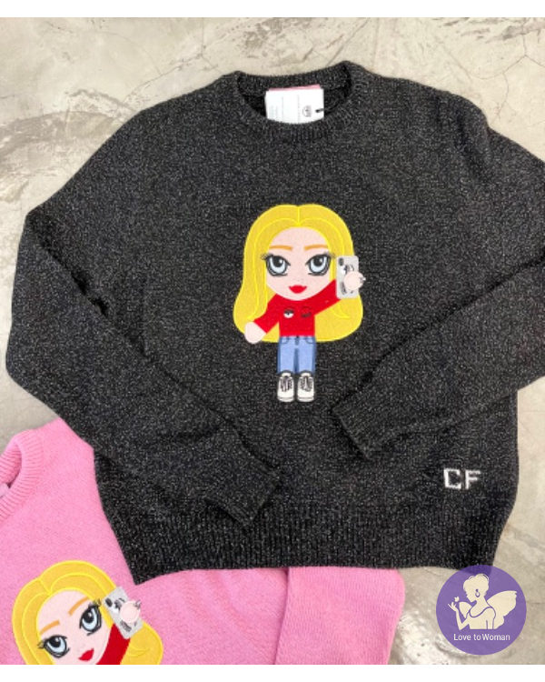 全新Chiara Ferragni Q版Chiara 潮流教主刺繡羊毛黑色S碼一件,S 適合平常穿S 到小M 碼的美女,意大利製造