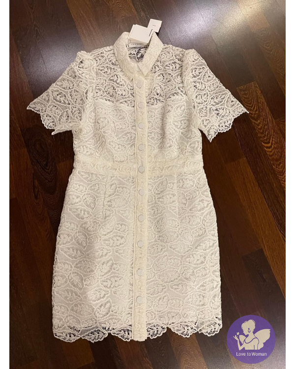 全新 Sandro 蕾絲縷空公主袖白色洋裝 38