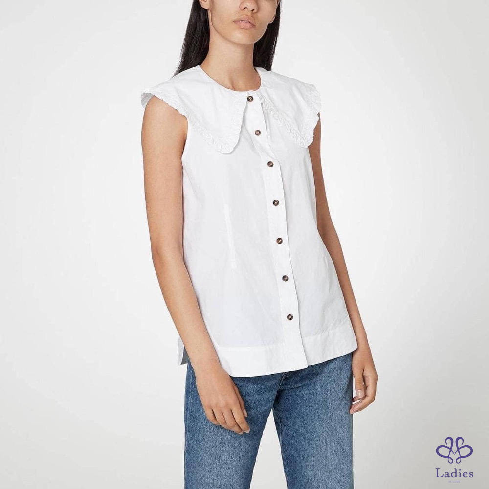 ♥️全新丹麥GANNI 荷葉領娃娃領背心襯衫 ,甜美少女風