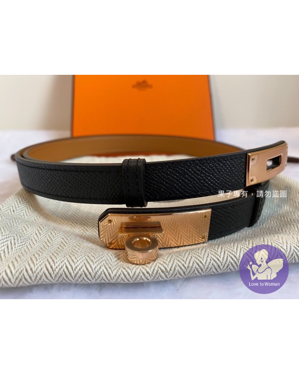 愛馬仕kelly黑色皮帶玫瑰金釦