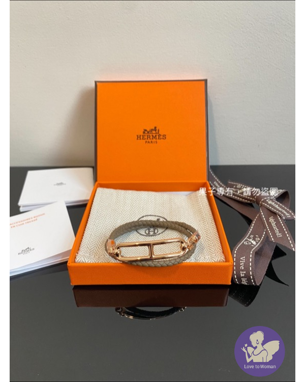 cuir roulis T2豬鼻象灰玫瑰金編織雙圈手環