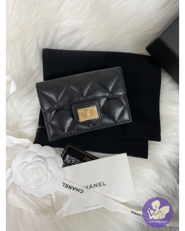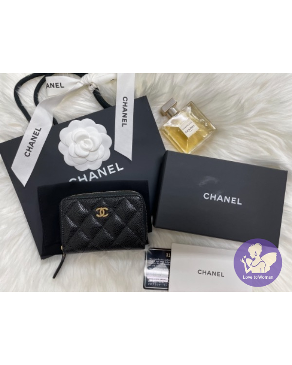 Chanel coco 新款荔枝皮黑金拉鍊零錢包