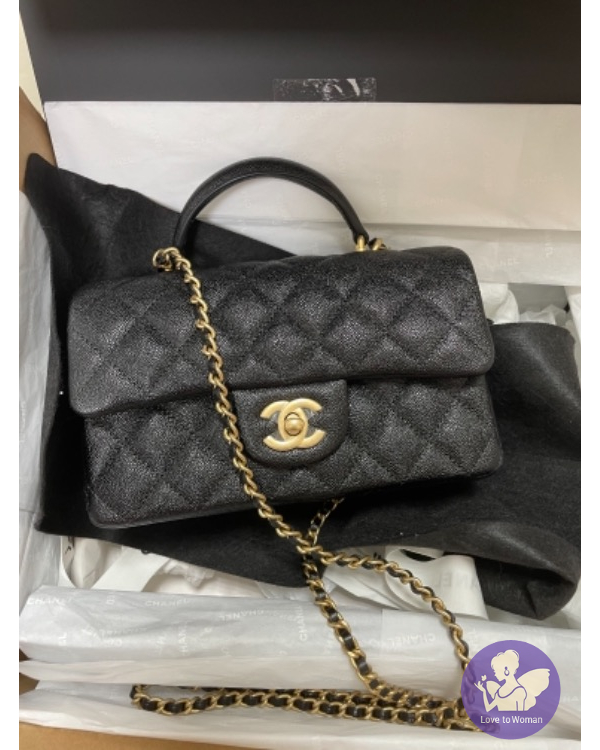 CHANEL 爆款經典黑金荔枝皮CF handle mini coco 20cm