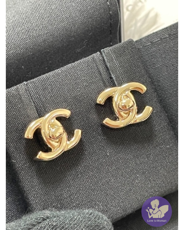 Chanel 香奈兒 淡金色書包釦耳環耳針