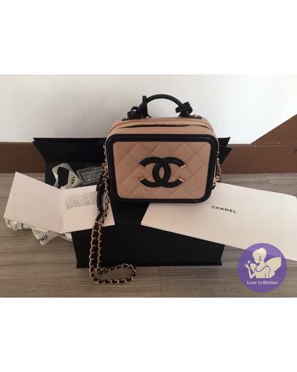 Chanel vanity經典米黑化妝包/小盒子/復古包