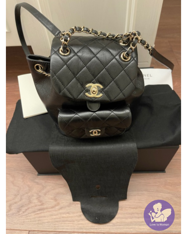 chanel 22早春duma 復古牛皮黑色後背包全新商品 只打開拍照