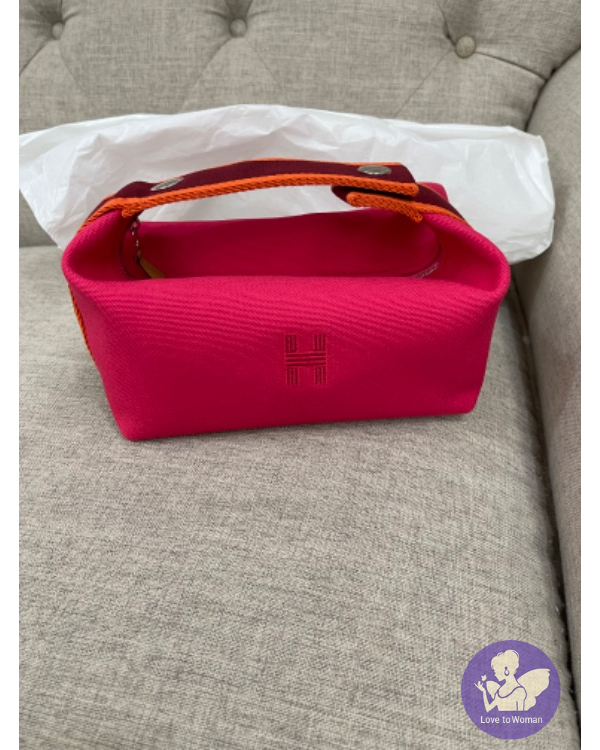 Hermès 桃紅色便當袋/盥洗包 全新