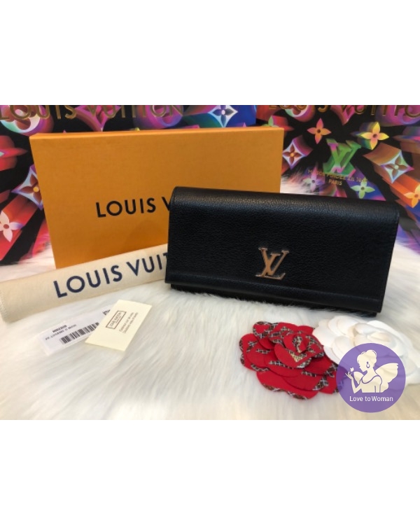Louis Vuitton LV Lockme 經典LOGO飾釦小牛皮扣式長夾(黑