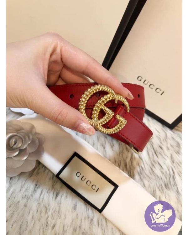 GUCCI Double G 雙G扣花邊環皮帶