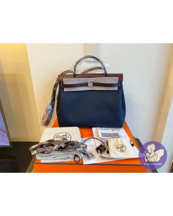 Hermes Herbag 海軍藍配馬鞍紅