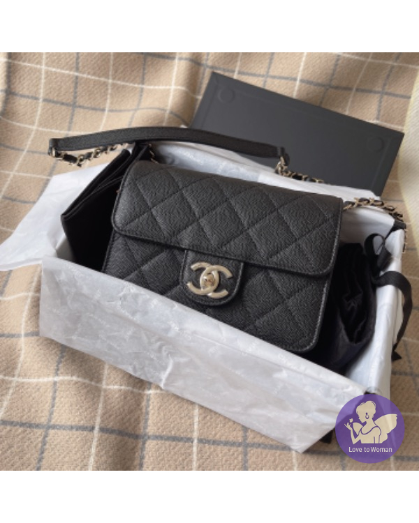 全新「22C」Chanel 荔枝牛方胖 黑淡金