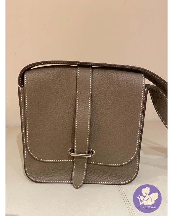 99成新 Hermes Steve Officier 絕版斜背小包 男女適用 大象灰