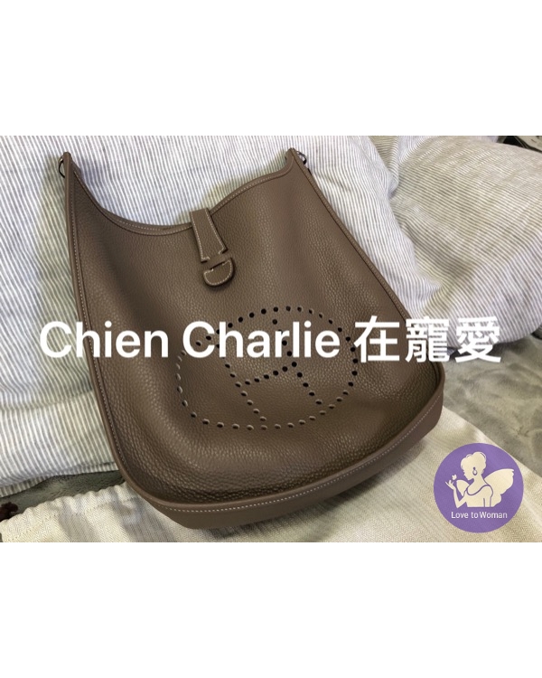 超甜價9成新 Hermes Evelyne III 33 斜背包 男女適用 大象灰銀釦
