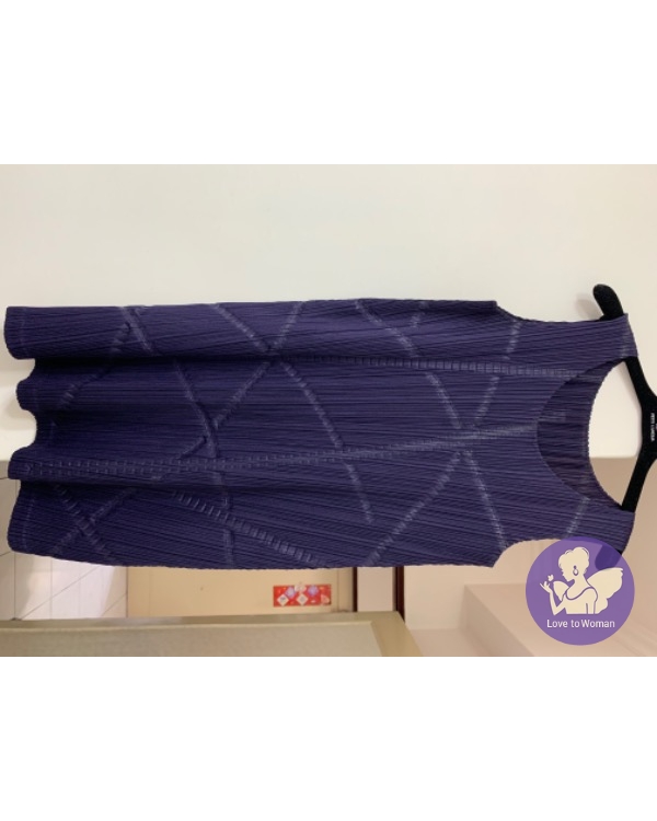 三宅一生Pleats Please 深藍紫色造型皺褶洋裝/長版上衣