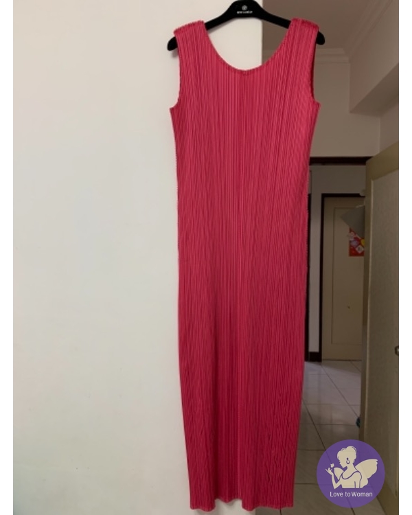 三宅一生Pleats Please深灰色無袖褶皺長版洋裝