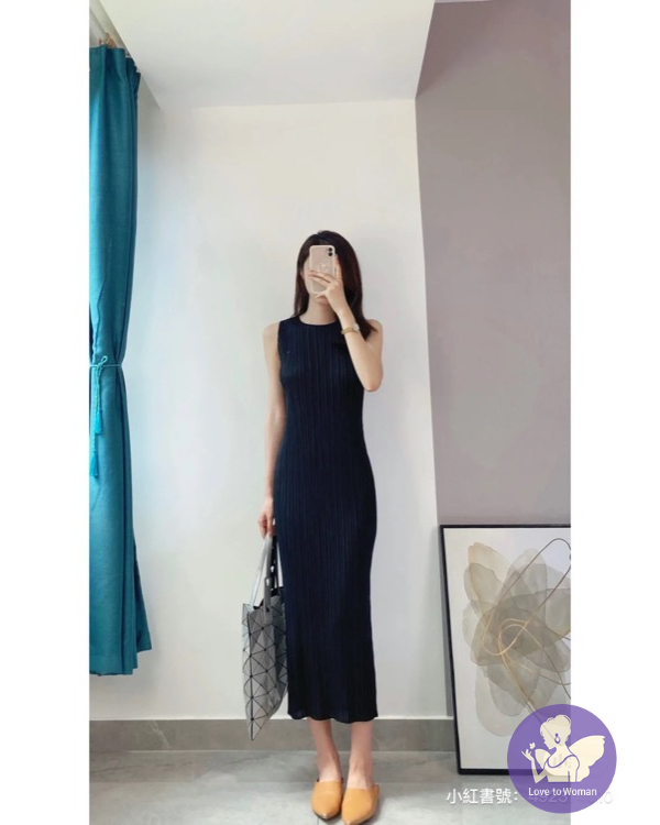 三宅一生IKKO TANAKA Issey Miyake 田中一光藍紫色皺褶背心洋裝