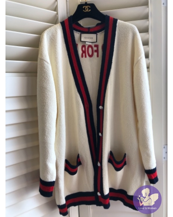 Gucci 落肩款 米色 長版 大珍珠扣 毛衣 外套 洋裝