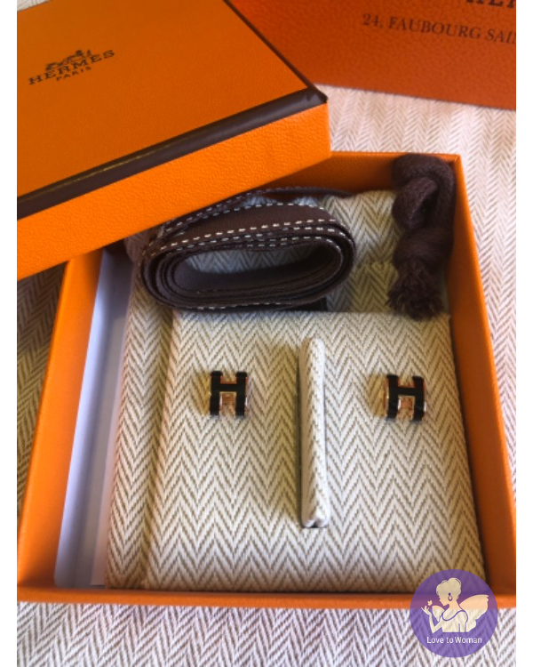 Hermes 愛馬仕 全新黑/白玫瑰金mini pop H耳環