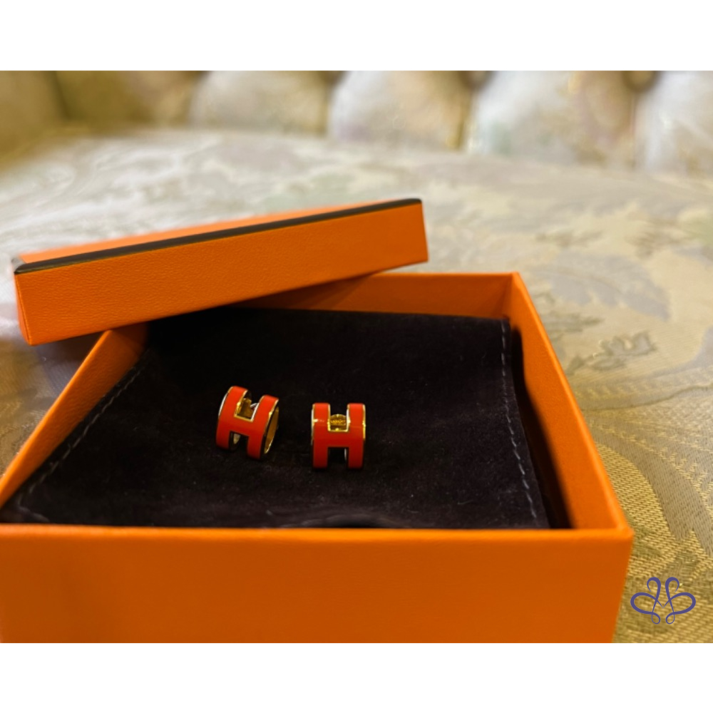 Hermes 愛馬仕 橘紅 /金 pop H 耳環
