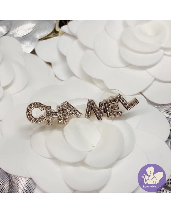 Chanel➰2020秋冬。香檳金水鑽字母耳環