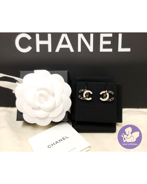 CHANEL 香奈兒 小香 2020春夏新款 霧面金色 麻花水鑽 雙C logo 穿式 針式耳環 全新