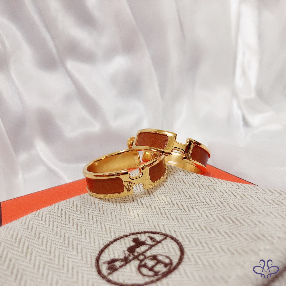 Hermes 愛馬仕 Olympe ring Gold金棕配玫瑰金epsom皮 窄版 戒指 S號 全新✨