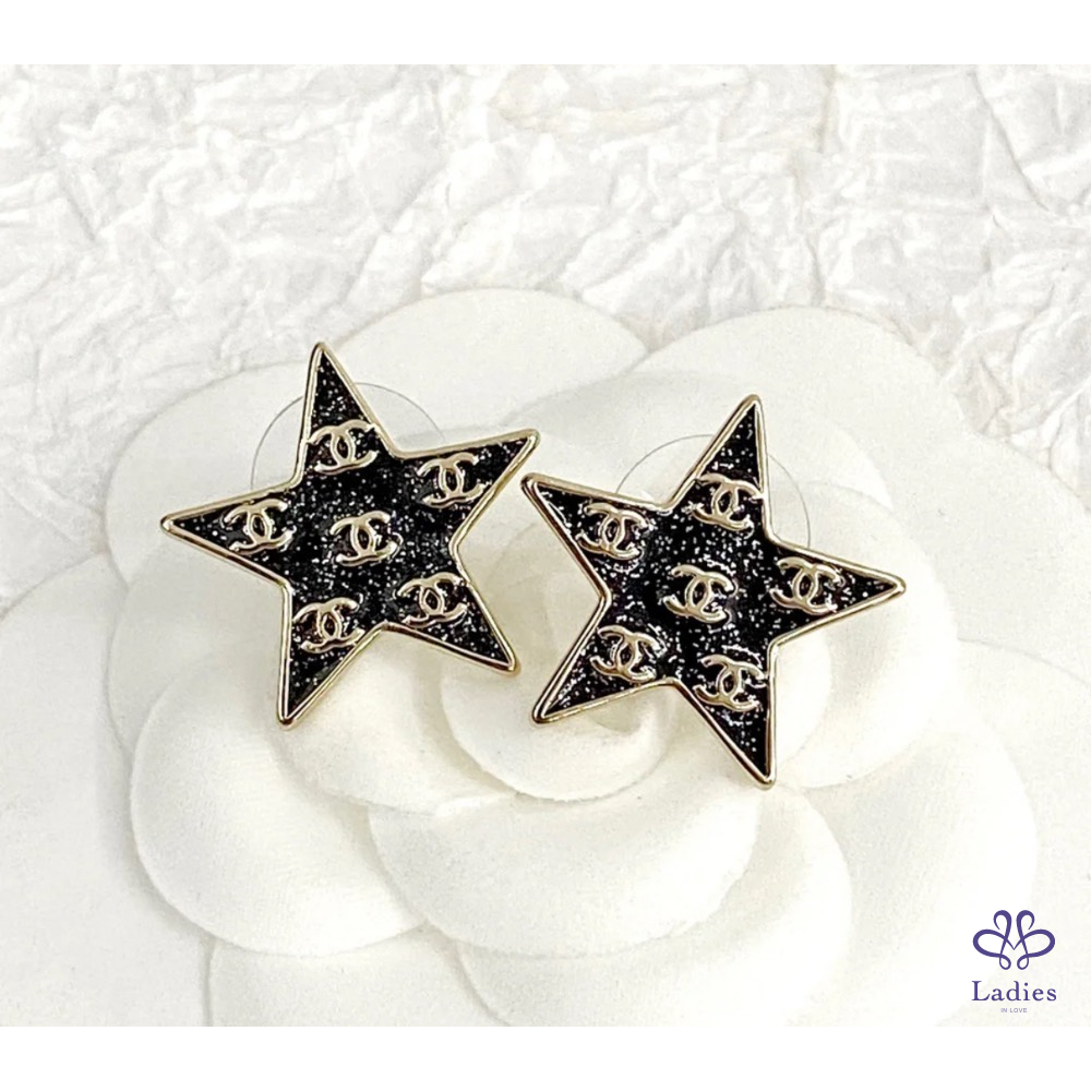 CHANEL 香奈兒 小香 24C 新款 星星 黑色琺瑯亮粉 配金色雙C logo  針式 穿式 耳環 全新✨