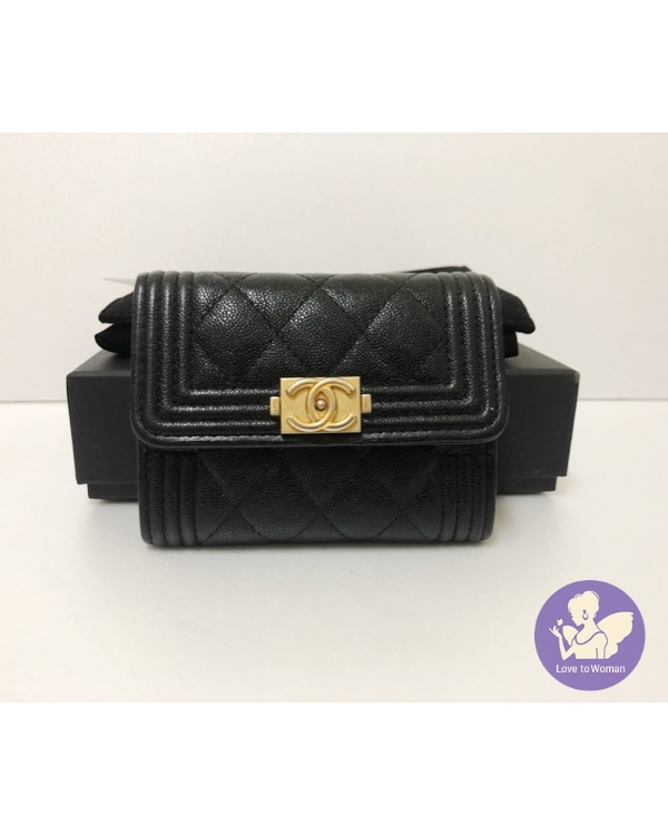 ​CHANEL 香奈兒 小香 經典 boy系列 黑色荔枝牛皮 霧金扣 零錢 雙層卡包✨