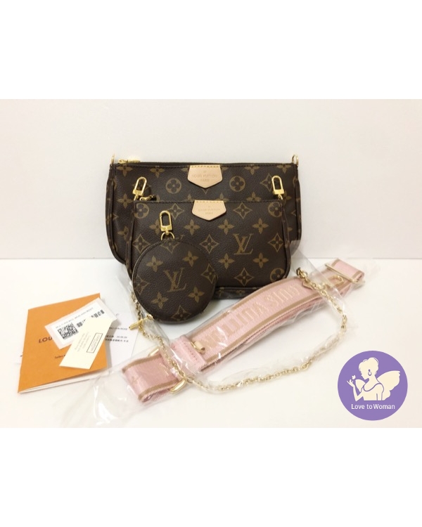 ​LV 路易威登 LOUIS VUITTON 超級爆款 潮流時尚 經典花紋 M44840 MULTI POCHETTE ACCESSOIRES 粉色背帶 三合一 五合一 包 全新✨