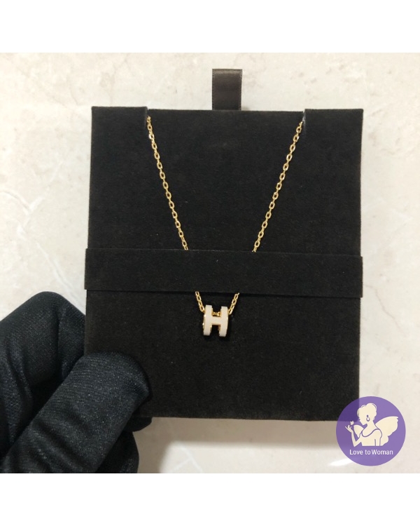 Hermes 愛馬仕 經典 琺瑯 橢圓型 新款 mini pop H 項鍊 Marron Glace 奶茶灰配金鍊 全新 ✨