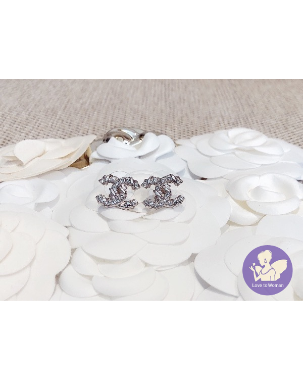 ​CHANEL 香奈兒 小香 經典 不規則 銀色 水鑽 雙C logo 針式 穿式 耳環 全新✨
