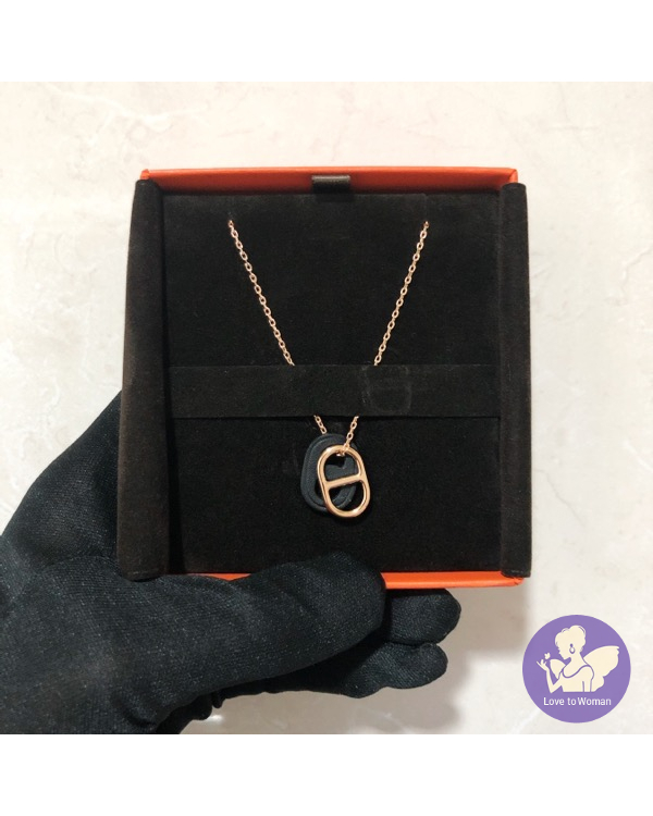 Hermès 愛馬仕 經典 O’maillon玫瑰金豬鼻配黑色 皮革 玫瑰金鍊 項鍊 全新✨