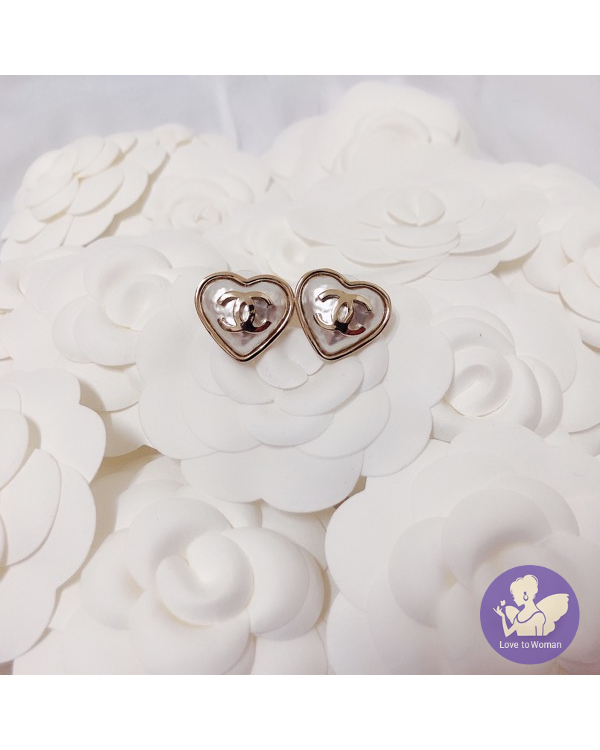 CHANEL 小香 香奈兒 22c 早春 復古 愛心 淡金 珍珠 logo 穿式 耳針 耳環 全新✨