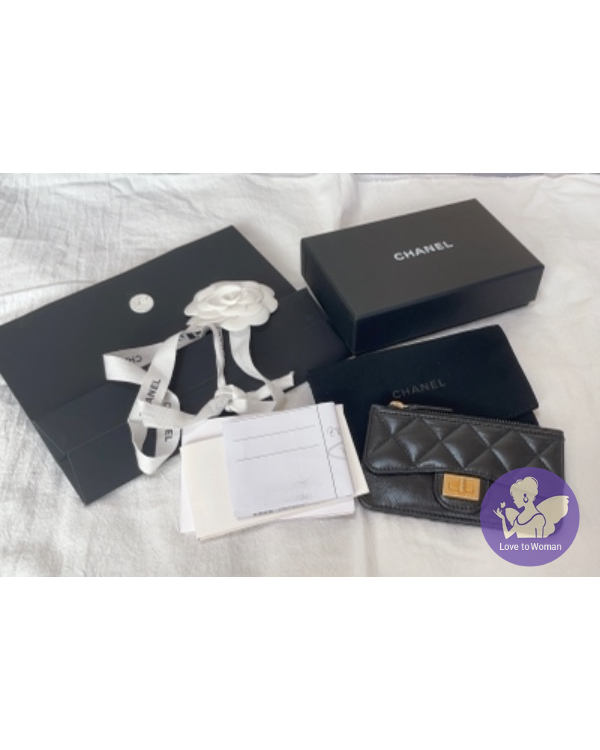 Chanel香奈兒復刻2.55系列小牛皮復古金釦零錢卡包