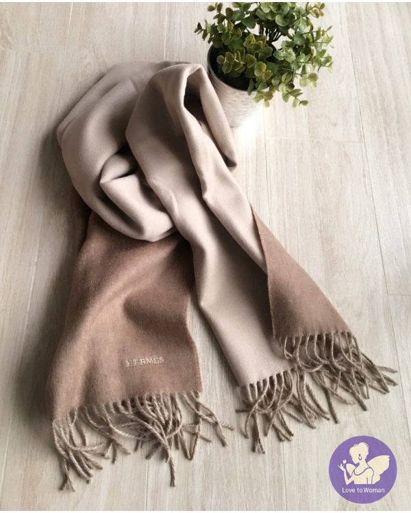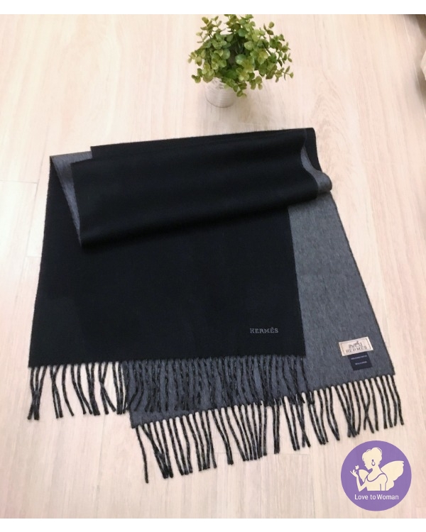 Hermes 雙面雙色 羊絨圍巾 黑灰