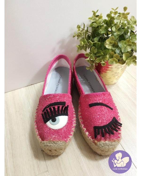 Chiara Ferragni 眨眼 草編鞋 35 粉